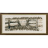 Permin, kit Barrière et oiseaux (art. PE13-8375). Dimensions: 9.5 x 14.5 cm. Trame: Aïda 5.5 pts. Dans la même série 13-8376, 13-8377 et 13-8378, trame grise.