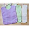 La Chiocciolina, Bavoir avec velcro bord vichy Rose (art. BV00127Rose). Dimensions: 28 x 25 cm. En éponge, avec bande à broder aïda 6 points/cm de 30 points de haut, à droite sur la photo.