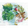Riolis, kit Little Parrot (art. RI2284). Dimensions: 15 x 15 cm. Aïda 4.4 points/cm blanc, avec échevette de laine acrylique.