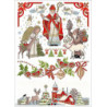 Graziano, Linge de cuisine imprimé Sweet Christmas, rouge et brun (art. CU6388). Dimensions: 45 x 70 cm. Coloris DMC correspondant ... à droite sur la photo, peut être brodé par du surpiquage des motifs, en points arrière, de tige ou bouclette.