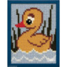 Orchidea, kit enfant Canard dans mare (art. OR9702). Dimensions: 17 x 20.5 cm. Demi point sur canevas imprimé de 1.8 points/cm , idéal pour une première broderie, dès 5 à 6 ans.