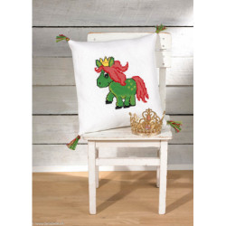 Permin, kit enfant Licorne (art. PE13-0380). Dimensions: 16 x 18 cm. Trame aïda 3.2 points/cm , avec coton perlé. Autres modèles sous réf 13-038.., avec le bois.