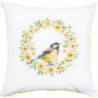 Luca-S, kit Couronne aux oiseaux (art. LUCASPB210). Dimensions: 35 x 40 cm. Trame: Etamine 10 fils/cm. trame blanche, contient le métériel pour la confection du coussin, sans le rembourrage.