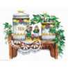 Andriana, kit Tea Collection. Green Melissa (art. SANK-39). Dimensions: 26.5 x 20 cm. Trame: Aïda 5.5 pts/cm blanc. Dans la même série SANK-40 et Sank-38.