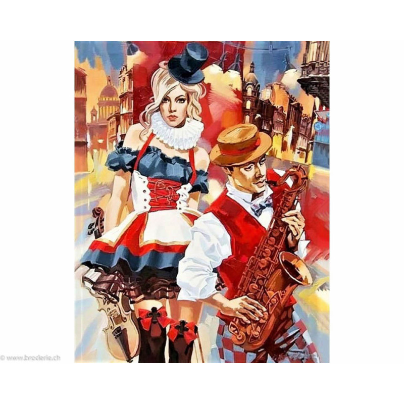 Collection d'Art, kit diamant Cabaret (art. CADE061). Dimensions: 38 x 48 cm. Kit comprenant la toile adhésive, les strass carrés emballés dans des sachets individuels et numérotés aux références des coloris de DMC, une pince, un stylo et sa colle, 2 réceptables et les explications.Toute la surface du tableau est à recouvrir de strass. ATTENTION: ce n'est pas une broderie, il n'y a ni fil ni aiguille, mais un collage comme une mosaïque.