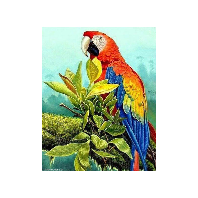 Collection d'Art, kit diamant Exotic Bird (art. CADE6059). Dimensions: 38 x 48 cm. Kit comprenant la toile adhésive, les strass carrés emballés dans des sachets individuels et numérotés aux références des coloris de DMC, une pince, un stylo et sa colle, 2 réceptables et les explications.Toute la surface du tableau est à recouvrir de strass. ATTENTION: ce n'est pas une broderie, il n'y a ni fil ni aiguille, mais un collage comme une mosaïque.