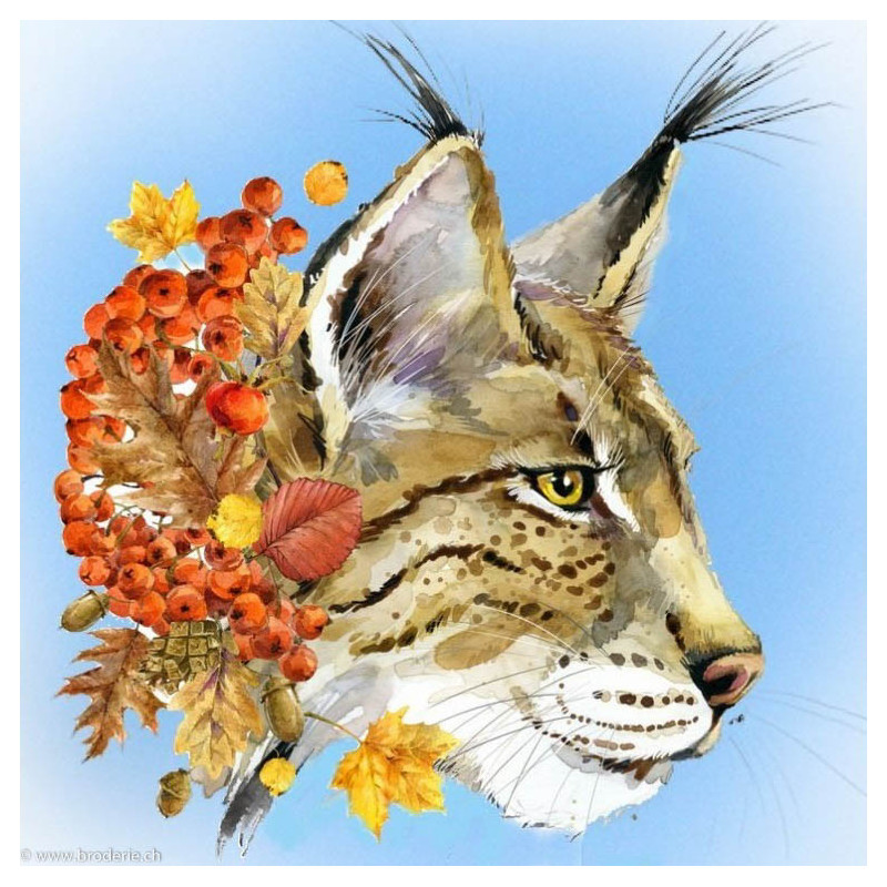 Collection d'Art, kit diamant Lynx (art. CADE7000). Dimensions: 38 x 38 cm. Kit comprenant la toile adhésive, les strass carrés emballés dans des sachets individuels et numérotés aux références des coloris de DMC, une pince, un stylo et sa colle, 2 réceptables et les explications.Toute la surface du tableau est à recouvrir de strass. ATTENTION: ce n'est pas une broderie, il n'y a ni fil ni aiguille, mais un collage comme une mosaïque.