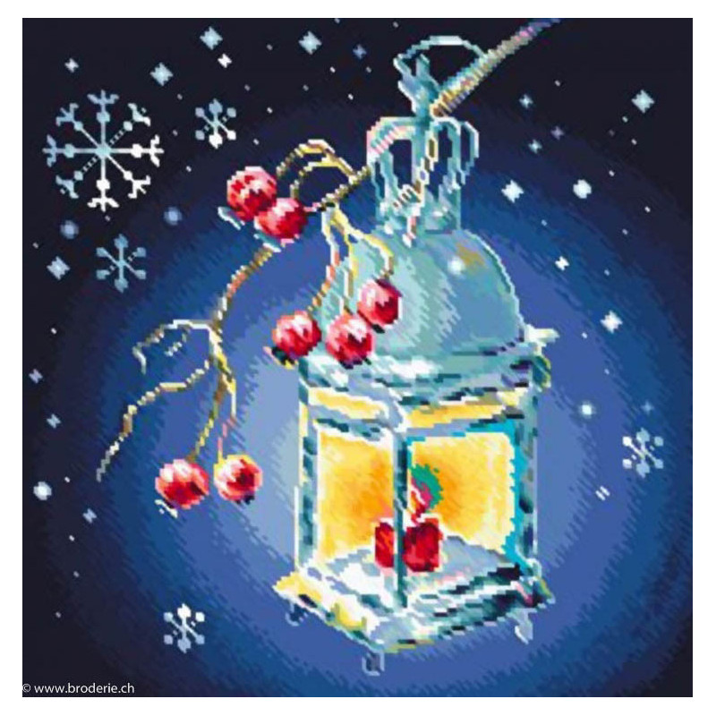 Collection d'Art, kit diamant Christmas Lantern (art. CADE7054). Dimensions: 38 x 38 cm. Kit comprenant la toile adhésive, les strass carrés emballés dans des sachets individuels et numérotés aux références des coloris de DMC, une pince, un stylo et sa colle, 2 réceptables et les explications.Toute la surface du tableau est à recouvrir de strass. ATTENTION: ce n'est pas une broderie, il n'y a ni fil ni aiguille, mais un collage comme une mosaïque.