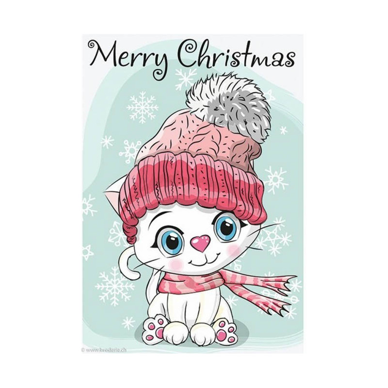 Collection d'Art, kit diamant carte White kitten (art. CADCCF022). Dimensions: 20 x 29 cm. Kit comprenant la toile adhésive, les strass carrés emballés dans des sachets individuels et numérotés aux références des coloris de DMC, une pince, un stylo et sa colle, et les explications.Sur un carton solide, cela fait un joli petit tableauATTENTION: ce n'est pas une broderie, il n'y a ni fil ni aiguille, mais un collage comme une mosaïque.