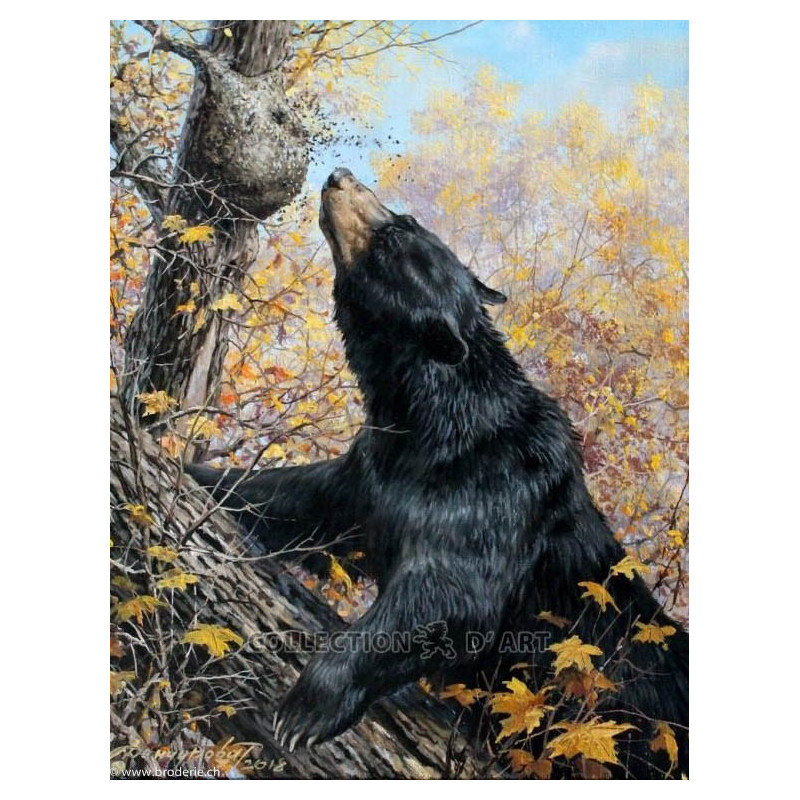 Collection d'Art, kit diamant Forest sweet-tooth (art. CADE7149). Dimensions: 38 x 48 cm. Kit comprenant la toile adhésive, les strass carrés emballés dans des sachets individuels et numérotés aux références des coloris de DMC, une pince, un stylo et sa colle, 2 réceptables et les explications.Toute la surface du tableau est à recouvrir de strass. ATTENTION: ce n'est pas une broderie, il n'y a ni fil ni aiguille, mais un collage comme une mosaïque.