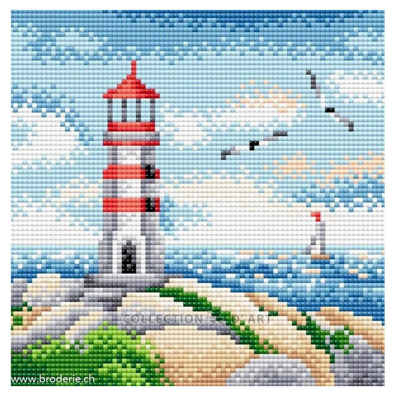 BrilliArt, kit diamant Beacon of Hope (art. MC-109). Dimensions: 20 x 20 cm. Kit comprenant la toile adhésive, les strass carrés emballés dans des sachets individuels et numérotés aux références des coloris de DMC, une pince, un stylo et sa colle, 2 réceptables et les explications.Toute la surface du tableau est à recouvrir de strass. ATTENTION: ce n'est pas une broderie, il n'y a ni fil ni aiguille, mais un collage comme une mosaïque.