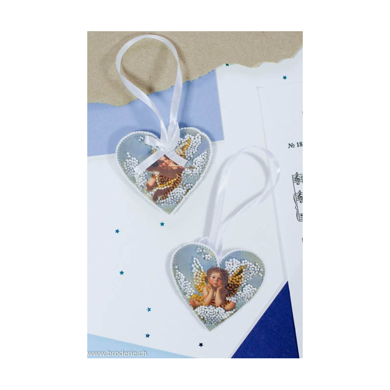 Abris Art, kit perles Decoration Your Little Cupid (art. AABT-053). Dimensions: 15 x 7 cm. Suspenses en perles à coudre sur un tissu coloré.Attention, ce n'est pas du point de croix comptés.Matériel pour les deux décorations.