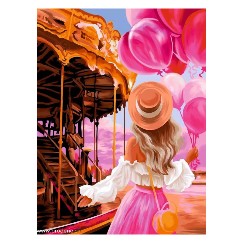 ArtCity, kit diamant Faytale Carousel (art. ACVA001). Dimensions: 30 x 40 cm. Kit Diamant comprenant la toile adhésive imprimée à recouvrir de strass, les sachets de strass 'diamants' ronds triés par couleurs, un stylet et sa cire, un réceptacle et les explications.La toile est déjà tendue sur cadre et est entièrement à recouvrir de strass. Jusqu'à épuisement du stock ATTENTION, ce n'est pas une broderie, pas de fil ni d'aiguille, mais une mosaïque.