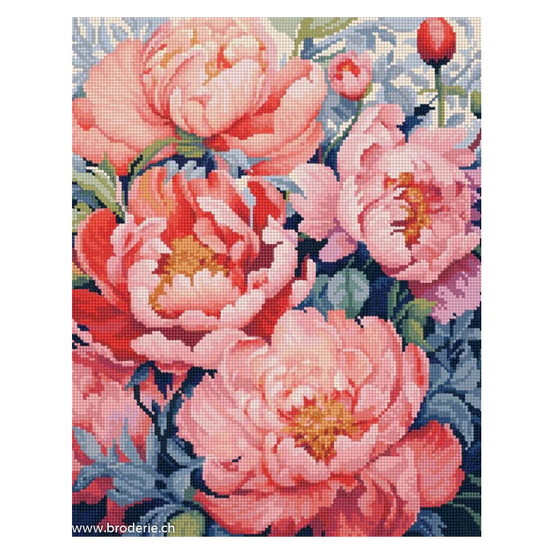 ArtCity, kit diamant Flowers (art. ACVA822). Dimensions: 30 x 40 cm. Kit Diamant comprenant la toile adhésive imprimée à recouvrir de strass, les sachets de strass 'diamants' ronds triés par couleurs, un stylet et sa cire, un réceptacle et les explications.La toile est déjà tendue sur cadre et est entièrement à recouvrir de strass.ATTENTION, ce n'est pas une broderie, pas de fil ni d'aiguille, mais une mosaïque.
