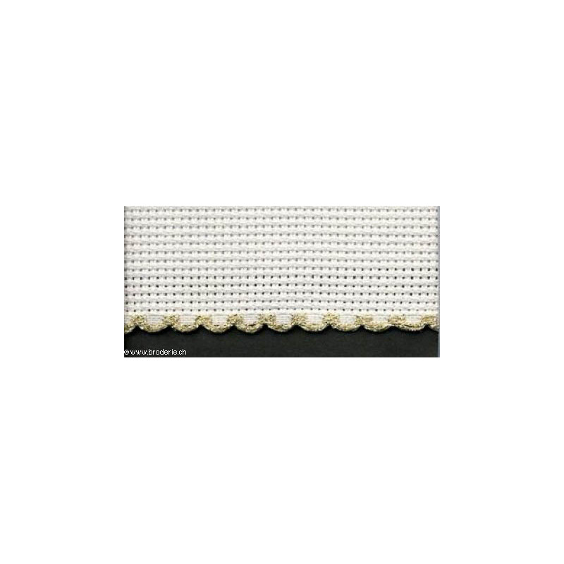 Zweigart, bande à broder 10cm blanc bord. Doré (56 pts) (art. 7195-181). Largeur: 10 cm. 56 points sur la largeur de la bande, voi image 7107-181. Prix pour 10 cm, minimum à commander: 50 cm (indiquez 5 comme quantité pour 50 cm, 6 pour 60 cm, etc...).