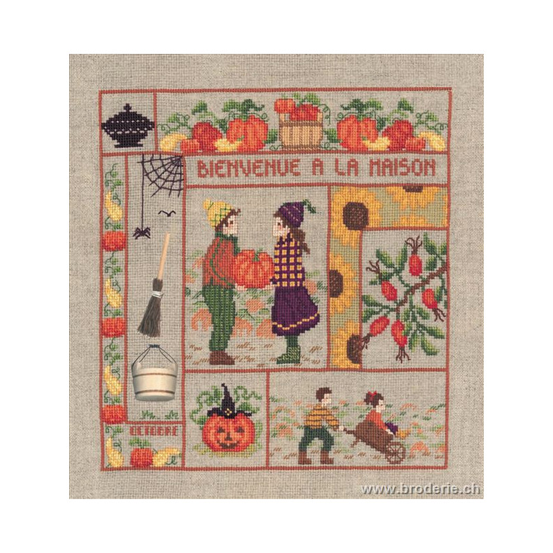 L'article 'Bonheur des Dames, kit bienvenue octobre (BD2659)' fait partie de notre assortiment depuis le 14 septembre 2007. La gamme française Bonheur des Dames est très complète et propose de très jolis modèles de kits de point-de croix comptés. Sont très représentés les thèmes de la mer, des mois et saisons,la cuisine et les enfants. Pour l'instant nous avons mis sur le site les kits, mais le Bonheur des Dames propose aussi des accessoires tels que coeur en lin, bottes de Noël en feutrine prêts à être broder, modèles de points de croix. Vous pouvez nous contacter pour ces articles que nous tenons aussi en partie en stock. Fiche technique: kits très bien présentés, souvent avec les accessoires fournis. Mais attention, les kits peuvent avoir différents points et parfois des petits-points (tout le kit -ex BD3646 - ou une partie - ex BD1135), merci d'y prendre garde lors de votre commande.