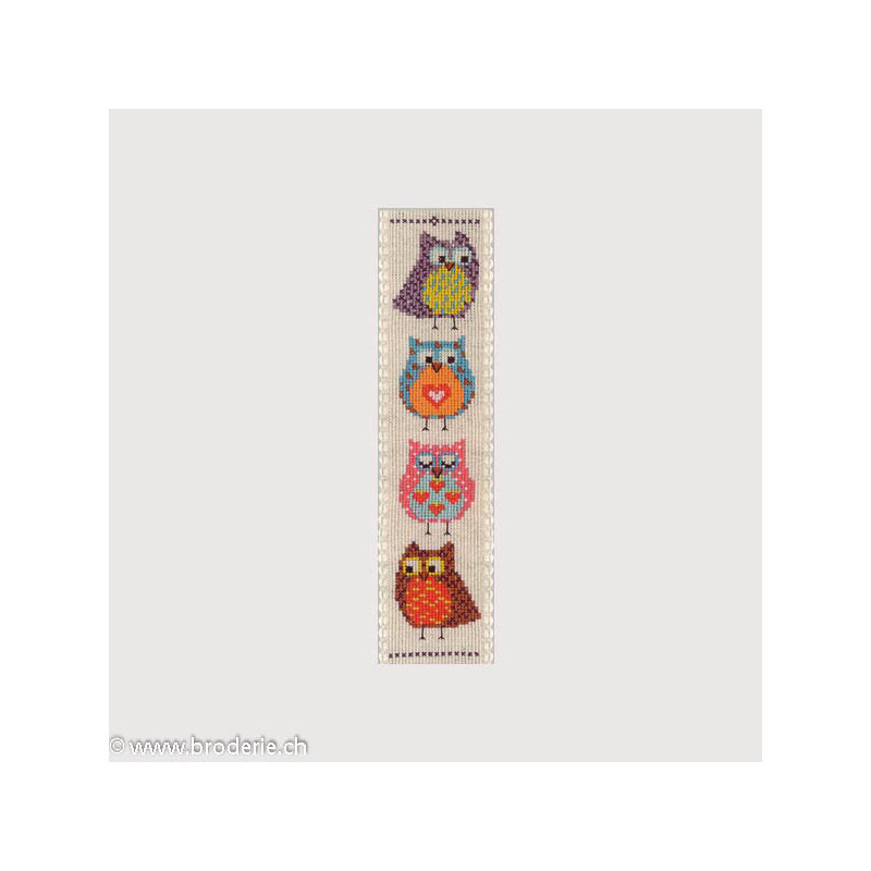 L'article 'Bonheur des Dames, kit signet 4 chouettes (BD4581)' fait partie de notre assortiment depuis le 22 septembre 2014. La gamme française Bonheur des Dames est très complète et propose de très jolis modèles de kits de point-de croix comptés. Sont très représentés les thèmes de la mer, des mois et saisons,la cuisine et les enfants. Pour l'instant nous avons mis sur le site les kits, mais le Bonheur des Dames propose aussi des accessoires tels que coeur en lin, bottes de Noël en feutrine prêts à être broder, modèles de points de croix. Vous pouvez nous contacter pour ces articles que nous tenons aussi en partie en stock. Fiche technique: kits très bien présentés, souvent avec les accessoires fournis. Mais attention, les kits peuvent avoir différents points et parfois des petits-points (tout le kit -ex BD3646 - ou une partie - ex BD1135), merci d'y prendre garde lors de votre commande.