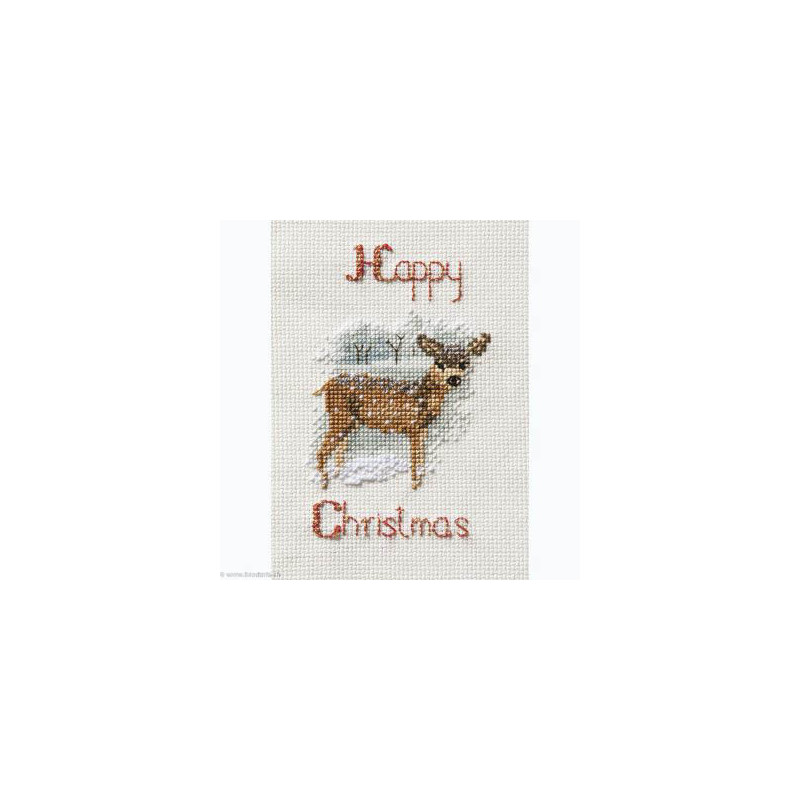 Derwentwater, kit Christmas Card - Deer in a Snowstorm (art. DWCDX56). Dimensions: 9 x 13 cm. Trame: Aïda 6.4 pts. Kit carte de voeux, contient la carte et, l'enveloppe. Dans la même série DWCDX, pour les autres cartes de voeux, réf sous DWCDG et numéro.