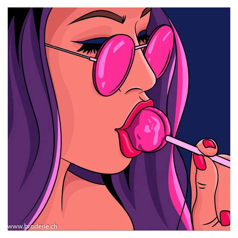Wizardi, kit diamant Pop art (art. WIWD3026). Dimensions: 40 x 40 cm. Kit complet de Broderie Diamant comprenant la toile adhésive imprimée à recouvrir de strass, les sachets de strass 'diamants' triés par couleurs, un stylet et sa cire, un réceptacle et les explications. La totalité de la surface est à recouvrir. ATTENTION, ce n'est pas une broderie, pas de fil ni d'aiguille, mais une mosaïque.