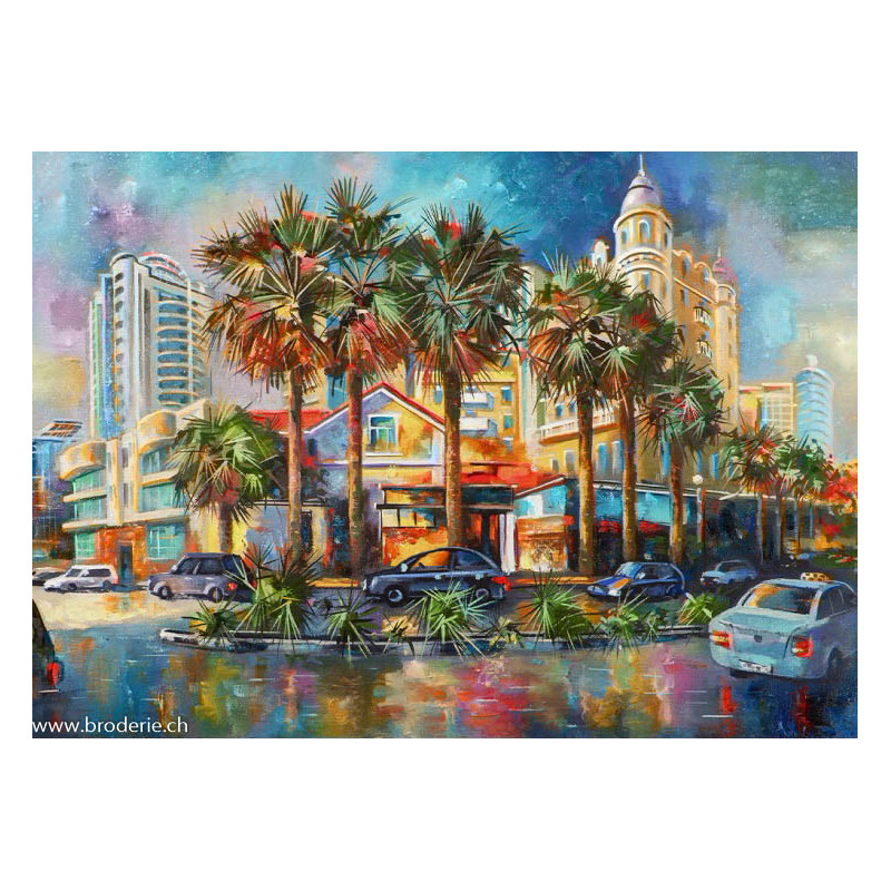 Wizardi, kit diamant Las Vegas (art. WIWD3046). Dimensions: 70 x 50 cm. Kit complet de Broderie Diamant comprenant la toile adhésive imprimée à recouvrir de strass, les sachets de strass 'diamants' triés par couleurs, un stylet et sa cire, un réceptacle et les explications. La totalité de la surface est à recouvrir. ATTENTION, ce n'est pas une broderie, pas de fil ni d'aiguille, mais une mosaïque.