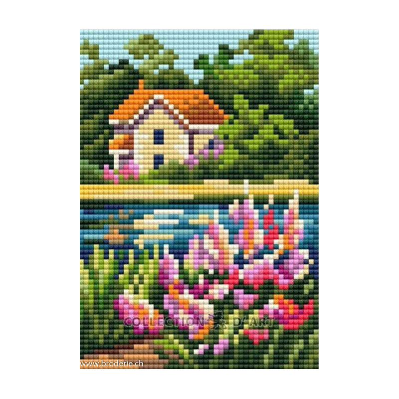 Collection d'Art, kit diamant carte Sketches of nature - paysage (art. CADCCF046). Dimensions: 12 x 17 cm. Kit comprenant la toile adhésive, les strass carrés emballés dans des sachets individuels et numérotés aux références des coloris de DMC, une pince, un stylo et sa colle, et les explications.Sur un carton solide, cela fait un joli petit tableauATTENTION: ce n'est pas une broderie, il n'y a ni fil ni aiguille, mais un collage comme une mosaïque.