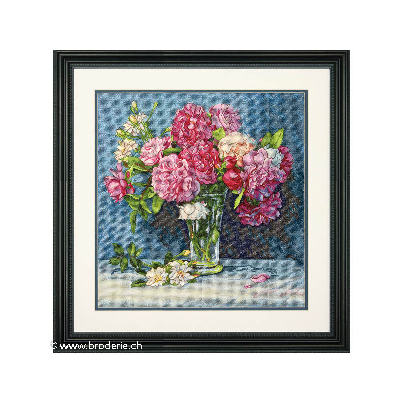 Dimensions Gold, kit Mary's Bouquet (art. DIM35295). Dimensions: 30 x 30 cm. Points utilisés: point de croix, demi-point. Broderie sur aïda 6.4 points/cm bleu , relativement complexe et remplie, avec l'utilisation de 2 à 5 brins pour les points, et parfois un mélange de fils de différentes couleur pour un point, ce qui donne un bel aspect de profondeur de l'image. Jusqu'à épuisement du stock ...
