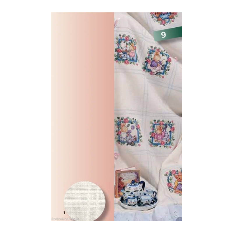Zweigart, trame à carreaux à broder pour couverture (art. 7563-1). Largeur: 140 cm. Trame 100 acrylique, blanc cassé, idéal pour la confection de couverture. A l'achet de la trame, 4 petits motifs divers sont offerts pour donner des idées. Trame unifil, 50 fils par côté de carré, jusqu'à épuisement du stock .