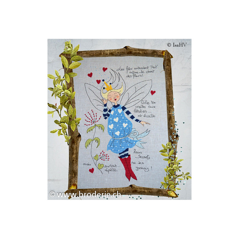 L'article 'Isabelle Vautier, grille Fée des secrets (RV242)' fait partie de notre assortiment depuis le 29 septembre 2012. Isabelle Vautier nous propose une très jolie gamme de modèles de points de croix comptés, faciles à réaliser sur des thèmes toujours actuels - aminaux, abécédaire, fleurs marquoir, coeurs. Ces modèles sont très agréables à réaliser, et Isabelle propose aussi de sympathiques monochromes, éventuellement deux teintes. Fiche technique : points de croix, peu de points arrières.