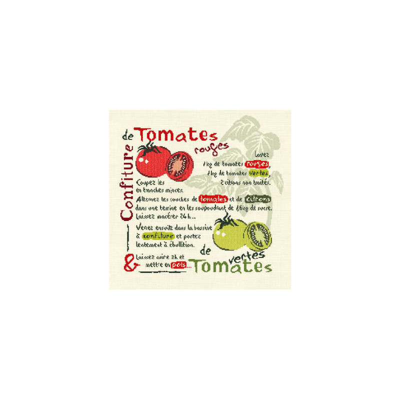 L'article 'LiliPoints, Grille Gourmandise - Confiture de tomates (G003)' fait partie de notre assortiment depuis le 14 avril 2008. LiliPoints nous propose une très jolie gamme moderne de points de croix comptés, faciles à réaliser sur des thèmes toujours actuels - mariages- naissance - fêtes - Noël. Détail important: la créatrice nous conseille souvent dans ces fiches de réaliser la broderie 1 fil sur 1 fil lorsque les modèles ont plus de 150 points de large ou de haut. A vous de choisir ainsi la taille du résultat car en utilisant la trame standard 5.5 points/cm, les broderies sont parfois un peu grandes pour les monter en cadre, et alors nous conseillons de les monter sur un coussin (lorsqu'ils s'agit notamment de broderie à thème - amitié - mariage). Fiche technique : points de croix - peu de teintes utilisées dans les cotons - peu de points arrières. Les accessoires proposés sont souvent compris avec la fiche (coeurs en nacre - boutons).