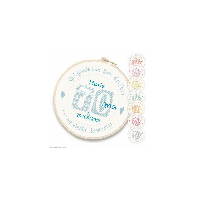 L'article 'LiliPoints, Grille Fête - 70 ans (F016)' fait partie de notre assortiment depuis le 25 avril 2019. LiliPoints nous propose une très jolie gamme moderne de points de croix comptés, faciles à réaliser sur des thèmes toujours actuels - mariages- naissance - fêtes - Noël. Détail important: la créatrice nous conseille souvent dans ces fiches de réaliser la broderie 1 fil sur 1 fil lorsque les modèles ont plus de 150 points de large ou de haut. A vous de choisir ainsi la taille du résultat car en utilisant la trame standard 5.5 points/cm, les broderies sont parfois un peu grandes pour les monter en cadre, et alors nous conseillons de les monter sur un coussin (lorsqu'ils s'agit notamment de broderie à thème - amitié - mariage). Fiche technique : points de croix - peu de teintes utilisées dans les cotons - peu de points arrières. Les accessoires proposés sont souvent compris avec la fiche (coeurs en nacre - boutons).