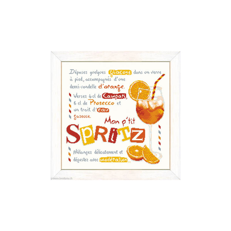 L'article 'LiliPoints, Grille Gourmandise - Mon P'tit spritz (G038)' fait partie de notre assortiment depuis le 4 juin 2020. LiliPoints nous propose une très jolie gamme moderne de points de croix comptés, faciles à réaliser sur des thèmes toujours actuels - mariages- naissance - fêtes - Noël. Détail important: la créatrice nous conseille souvent dans ces fiches de réaliser la broderie 1 fil sur 1 fil lorsque les modèles ont plus de 150 points de large ou de haut. A vous de choisir ainsi la taille du résultat car en utilisant la trame standard 5.5 points/cm, les broderies sont parfois un peu grandes pour les monter en cadre, et alors nous conseillons de les monter sur un coussin (lorsqu'ils s'agit notamment de broderie à thème - amitié - mariage). Fiche technique : points de croix - peu de teintes utilisées dans les cotons - peu de points arrières. Les accessoires proposés sont souvent compris avec la fiche (coeurs en nacre - boutons).