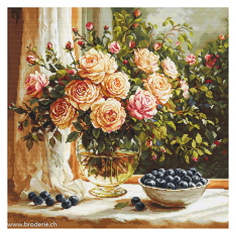 L'article 'Luca-S, kit canevas petits points Vase with Roses and Blueberries (LUCASG719)' fait partie de notre assortiment depuis le 3 novembre 2025. Dans cette rubrique vous trouvez les canevas 25 ct à compter de la maison moldave Luca-S (la trame correspond à 10 points/cm). Le point de broderie est le demi point comme le Gobelin, mais à compter sur un canevas vierge. Presque tous ces motifs se trouvent aussi en point de croix comptés, avec une trame de 6.4 ou 7 points/cm avec la référence B devant le chiffre, ce qui donne un résultat plus grand. Les fils ou laines sont de la maison Anchor.