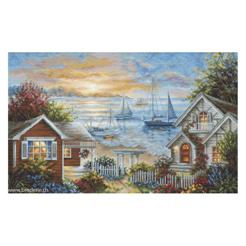 L'article 'Luca-S, kit Tranquil Seafront (LUCASB619)' fait partie de notre assortiment depuis le 6 novembre 2023. Luca-S est une gamme de points de croix comptés qui nous vient de Moldavie. Il y a beaucoup de modèles de personnages, paysages, nature morte, ainsi que de sympathiques kits pour Noël, des sacs à confectionner, des carttes postales à broder. Pour beaucoup de modèle vous pouvez aussi avoir le kit en canevas 25ct, pour des demi-points à compter (10/cm), ce qui fait la broderie bien plus petite et fine dans la rubrique Kits - Luca-S (P). Les kits sont fournis principalement sur de la trame aïda 6.4 points/cm ou 7 points/cm, ou de l'étamine de Zweigart, les coussins avec de l'étamine 8 fils ou 10 fils/cm. Les fils sont de la maison Anchor.