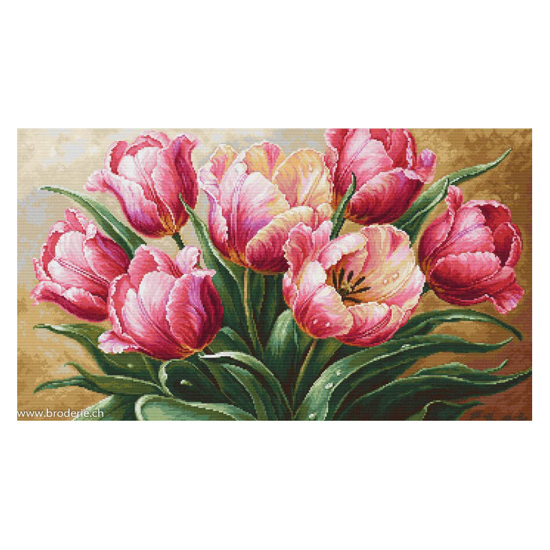 L'article 'Luca-S, kit Graceful Tulips (LUCASB718)' fait partie de notre assortiment depuis le 20 mai 2025. Luca-S est une gamme de points de croix comptés qui nous vient de Moldavie. Il y a beaucoup de modèles de personnages, paysages, nature morte, ainsi que de sympathiques kits pour Noël, des sacs à confectionner, des carttes postales à broder. Pour beaucoup de modèle vous pouvez aussi avoir le kit en canevas 25ct, pour des demi-points à compter (10/cm), ce qui fait la broderie bien plus petite et fine dans la rubrique Kits - Luca-S (P). Les kits sont fournis principalement sur de la trame aïda 6.4 points/cm ou 7 points/cm, ou de l'étamine de Zweigart, les coussins avec de l'étamine 8 fils ou 10 fils/cm. Les fils sont de la maison Anchor.