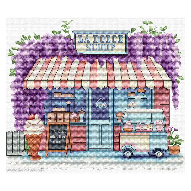 L'article 'Luca-S, kit Ice Cream Scoop (LUCASB1428)' fait partie de notre assortiment depuis le 3 novembre 2025. Luca-S est une gamme de points de croix comptés qui nous vient de Moldavie. Il y a beaucoup de modèles de personnages, paysages, nature morte, ainsi que de sympathiques kits pour Noël, des sacs à confectionner, des carttes postales à broder. Pour beaucoup de modèle vous pouvez aussi avoir le kit en canevas 25ct, pour des demi-points à compter (10/cm), ce qui fait la broderie bien plus petite et fine dans la rubrique Kits - Luca-S (P). Les kits sont fournis principalement sur de la trame aïda 6.4 points/cm ou 7 points/cm, ou de l'étamine de Zweigart, les coussins avec de l'étamine 8 fils ou 10 fils/cm. Les fils sont de la maison Anchor.