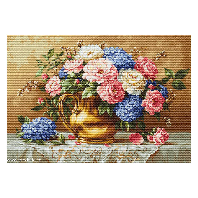 L'article 'Luca-S, kit Golden Bloom (LUCASB723)' fait partie de notre assortiment depuis le 8 novembre 2025. Luca-S est une gamme de points de croix comptés qui nous vient de Moldavie. Il y a beaucoup de modèles de personnages, paysages, nature morte, ainsi que de sympathiques kits pour Noël, des sacs à confectionner, des carttes postales à broder. Pour beaucoup de modèle vous pouvez aussi avoir le kit en canevas 25ct, pour des demi-points à compter (10/cm), ce qui fait la broderie bien plus petite et fine dans la rubrique Kits - Luca-S (P). Les kits sont fournis principalement sur de la trame aïda 6.4 points/cm ou 7 points/cm, ou de l'étamine de Zweigart, les coussins avec de l'étamine 8 fils ou 10 fils/cm. Les fils sont de la maison Anchor.