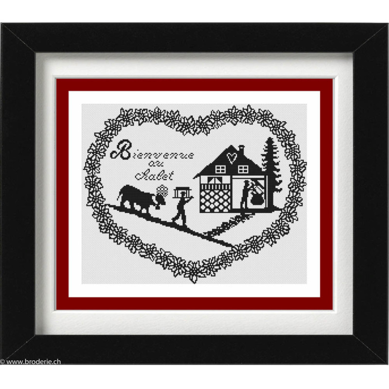 M&D Créations, grille Bienvenue Coeur Edelweiss (art. MDC02.02). Moèle de points de croix comptés.