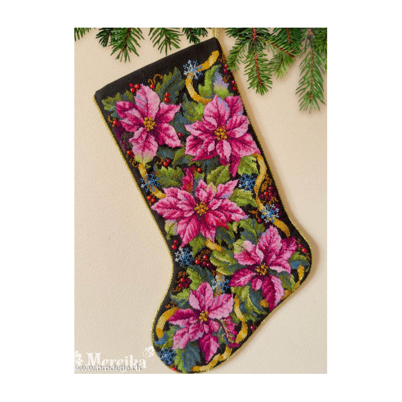 Merejka, kit Pink Poinsettia Christmas Stocking (MEK-262)