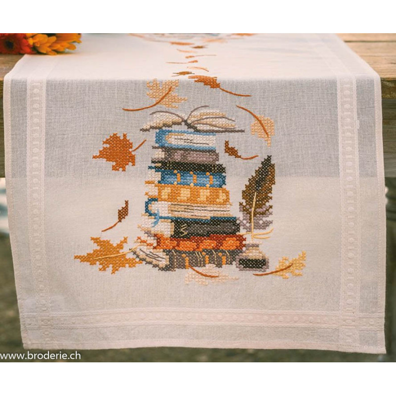 Vervaco, kit imprimé chemin de table Livres et feuilles d'automne (PN0201757)