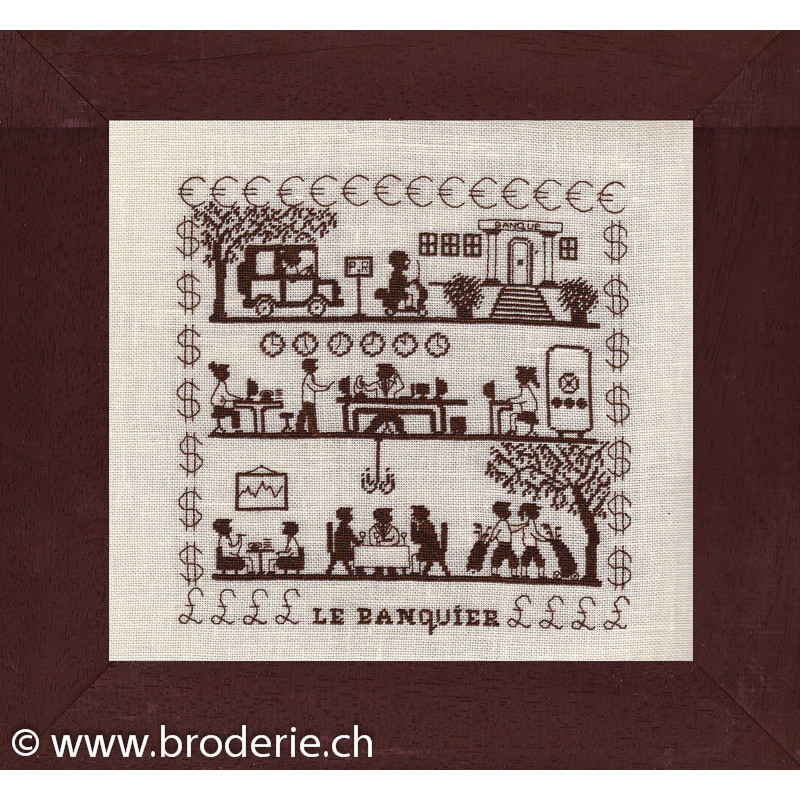 L'article 'Points Com, grille la journée d'un banquier (PCO2062)' fait partie de notre assortiment depuis le 31 octobre 2012. Points Com est une très jolie gamme de modèles de points de croix comptés, nouvellement visible sur les site internet. Sa créatrice Nicole Fuhr est genevoise et crée depuis quelques années des motifs sympas, notamment de nouveaux modèles de poyas, thème toujours très demandés.
