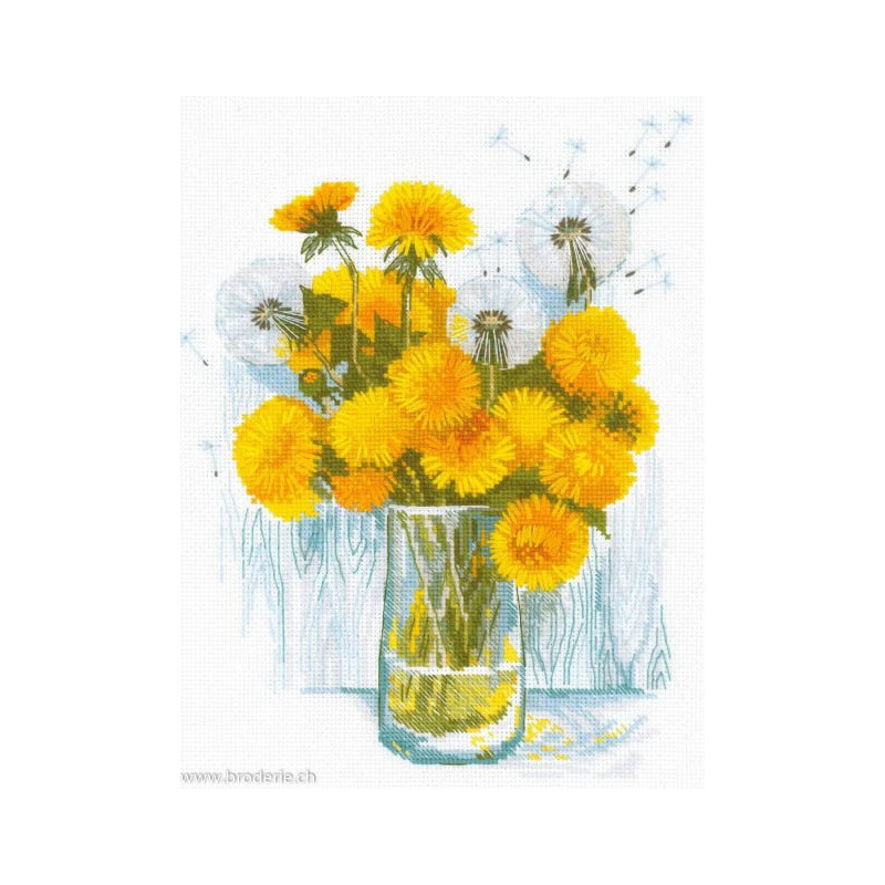 L'article 'Riolis, kit Sunny Dandelions (RI2229)' fait partie de notre assortiment depuis le 22 avril 2025. La gamme Riolis nous vient de Lituanie et propose une grande diversité de kits de points de croix comptés : paysages, animaux, saisons, modèles modernes et rétros, kits faciles et avec perles, reproduction de tableaux de maîtres. Sa particularité est essentiellement d'utiliser pour la plupart de ses kits de la laine très fine, idéale pour donner un aspect soyeux à la broderie. Pensez à bien regarder dans "plus de détails" du kit qui vous intéresse si le kit est avec laine ou mouliné. Tous les kits sont livrés avec de l'aïda 5,5 points/cm (Aïda 14) ou plus large (marqué aïda 10). il est cependant facile changer de trame, sauf pour les quelques kits ou l'aïda est imprimé par un dessin dans le fonds (références commençant par RIPT). Les kits mentionnés comme "facile" le sont car ils sont brodés sur de l'aïda 4.5 points/cm, mais ne sont pas conseillés pour un premier ouvrage d'enfant, car la plupart sont livrés avec de la lainev :-) Explication en russe et en anglais