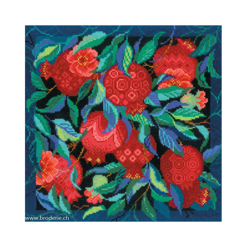 L'article 'Riolis, kit Pomegranate Garden (RI2269)' fait partie de notre assortiment depuis le 3 juillet 2025. La gamme Riolis nous vient de Lituanie et propose une grande diversité de kits de points de croix comptés : paysages, animaux, saisons, modèles modernes et rétros, kits faciles et avec perles, reproduction de tableaux de maîtres. Sa particularité est essentiellement d'utiliser pour la plupart de ses kits de la laine très fine, idéale pour donner un aspect soyeux à la broderie. Pensez à bien regarder dans "plus de détails" du kit qui vous intéresse si le kit est avec laine ou mouliné. Tous les kits sont livrés avec de l'aïda 5,5 points/cm (Aïda 14) ou plus large (marqué aïda 10). il est cependant facile changer de trame, sauf pour les quelques kits ou l'aïda est imprimé par un dessin dans le fonds (références commençant par RIPT). Les kits mentionnés comme "facile" le sont car ils sont brodés sur de l'aïda 4.5 points/cm, mais ne sont pas conseillés pour un premier ouvrage d'enfant, car la plupart sont livrés avec de la lainev :-) Explication en russe et en anglais