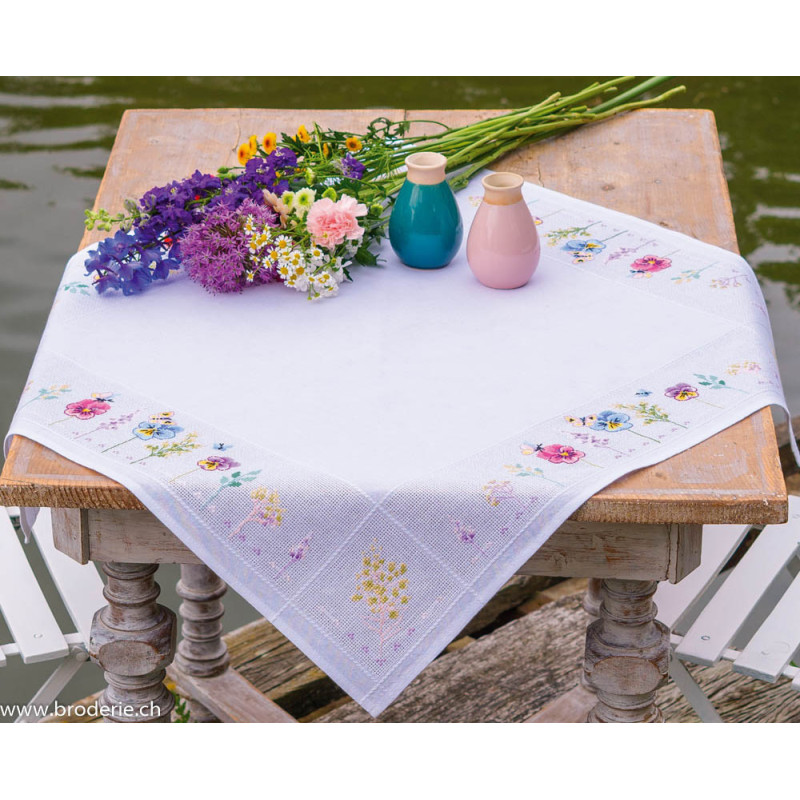 L'article 'Vervaco, kit facile nappe Pensées et graminées (PN0205041)' fait partie de notre assortiment depuis le 14 juin 2025. Vervaco est un fabricant belge de kits au point de croix, au point noué, aux points comptés, et propose aussi de sympathiques kits pour les enfants. Ils sont de réalisation relativement faciles : pas de quart de point, dessins et diagrammes très clairs, beaucoup de thèmes abordés (paysage , fleurs , mariage,et particulièrement kits de naissances, toises et Disney).